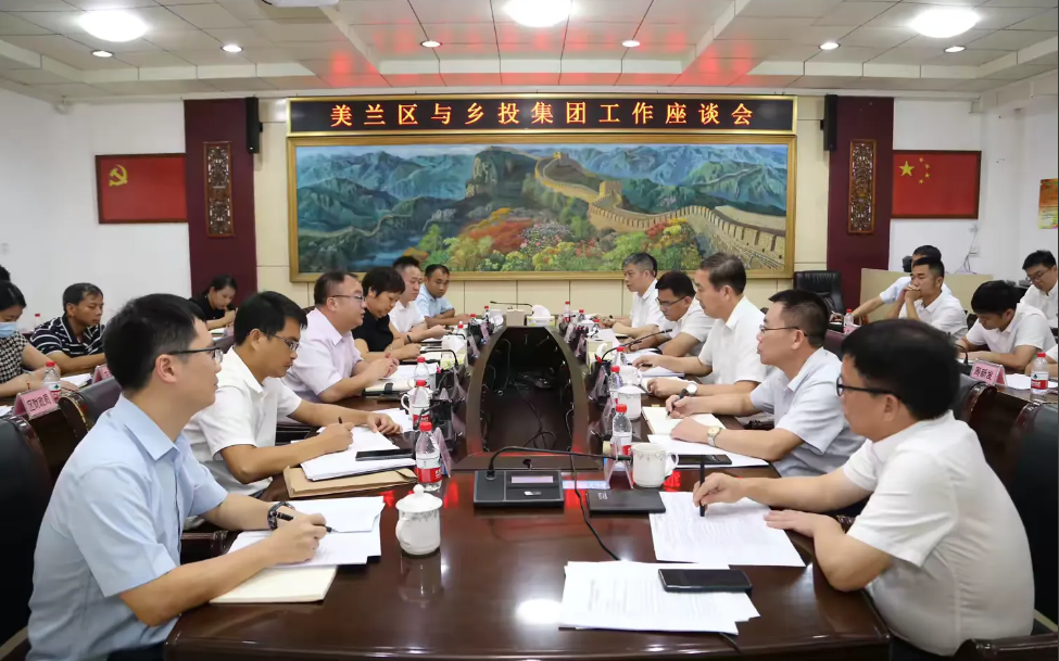 为贯彻落实市委、市政府关于推进国企整合重组工作的部署,2024年6月12日上午,乡投集团党委书记、董事长陈忠带队到美兰区政府座谈,座谈会由美兰区政府吴升娇区长主持。