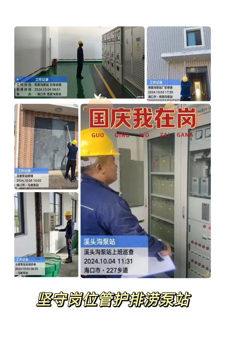 工作人员在排涝泵站24小时值班,始终坚守在第一线,加强泵机设施的运行调度,为人民群众正常生活和城市建设保驾护航。