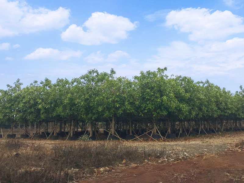演丰苗木收储示范基地位于美兰区演丰镇,占地面积约240亩,基地具备约1万株市政迁移树养护能力,并具备全冠假植市政绿化用苗年种植量4000株的生产能力。目前,基地种植有假萍婆、秋枫、黄槐和狐尾椰子等乔木棕榈共计2425株。