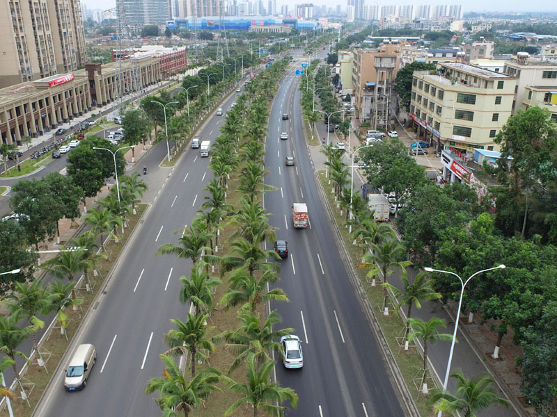 椰海大道(龙昆南至长天路段)绿化一期项目总投资约4000万元,回填土方约4万立方米,种植椰子树约4800株,铺设草坪约10万平方米,埋设给水管网约30公里,于2019年国庆节前完工。该项目突出本地树、本地草的运用,通过大量栽植海南椰子树,展现了“椰城”风韵,改变了椰海大道长期以来尘土飞扬的城市疮疤面貌。